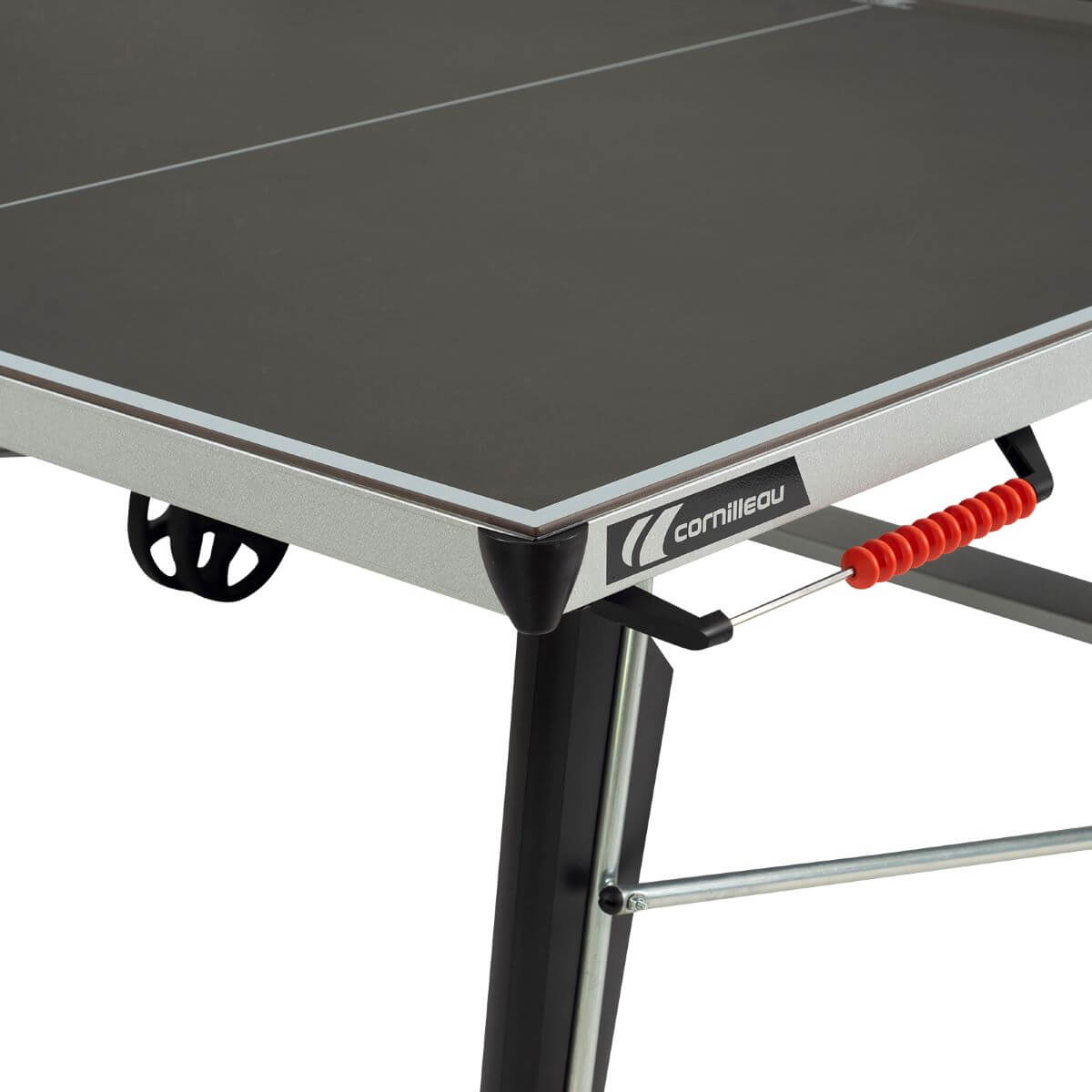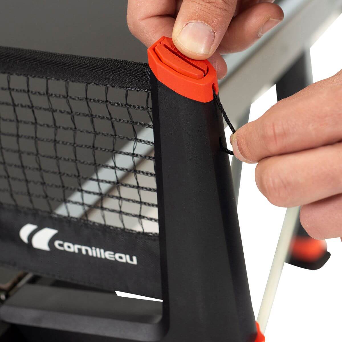 COMPACT TECHNOLOGY® foldesystem designet av Cornilleau reduserer risikoen for at bordet mister balansen. Det forhindrer også barn i å snike seg mellom panelene i oppbevaringsposisjon, og gjør bordet ditt lettere å åpne og lukke. Når den er brettet, har den den doble fordelen at den er mindre klumpete enn et standardbord og lettere å håndtere.