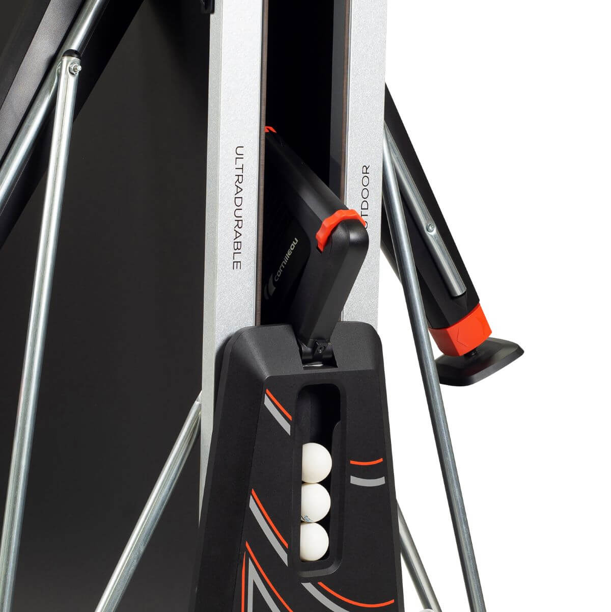 500X har noen praktiske lagringsfunksjoner for å unngå å miste tilbehør. På sidene av bordet kan du oppbevare dine racketer og baller, tømme lommene og bruke tilbehørsholderne og til og med legge igjen en liten flaske når du blir tørst. Hver detalj er designet for maksimal komfort og enkelhet.
